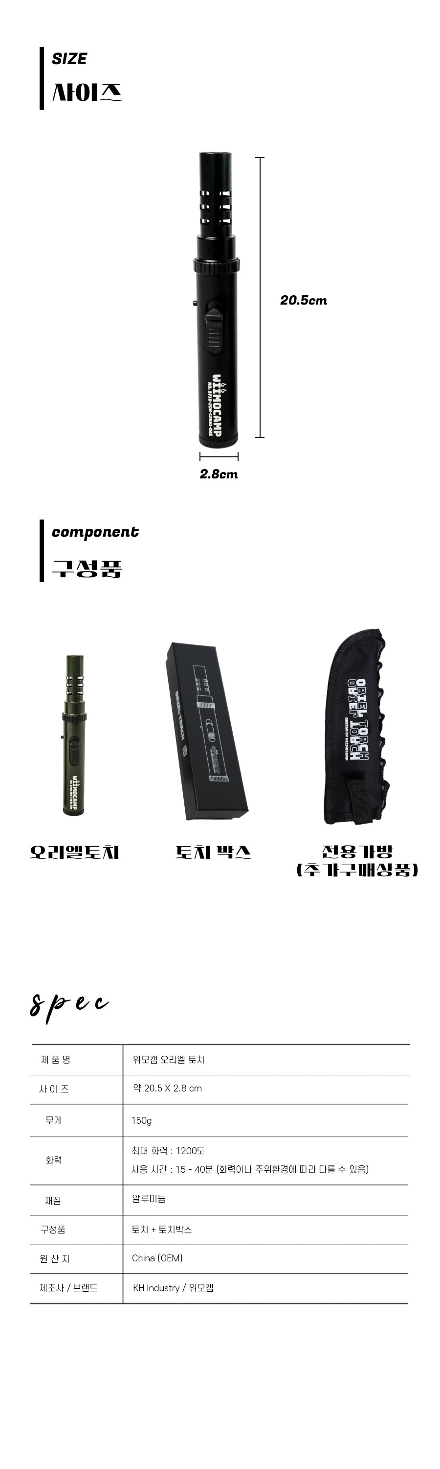위모캠 스틱 토치 오리엘 택티컬 캠핑가스토치 요리용 미니토치